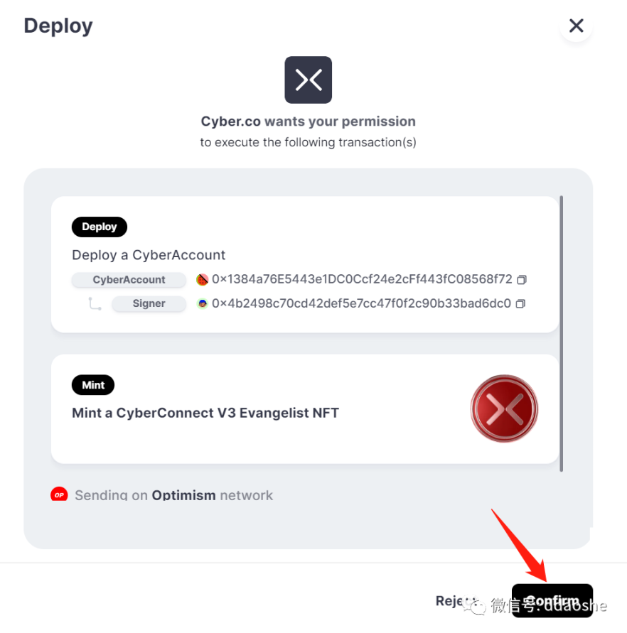 5 点击 confirm,小狐狸弹窗签名等待完成即可
