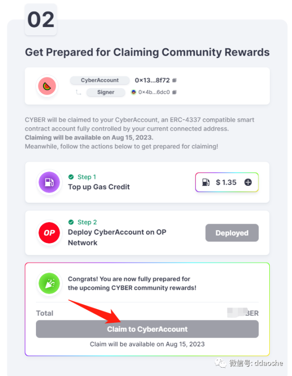 6 明天开放领取后直接点击 claim to cyberaccount 即可