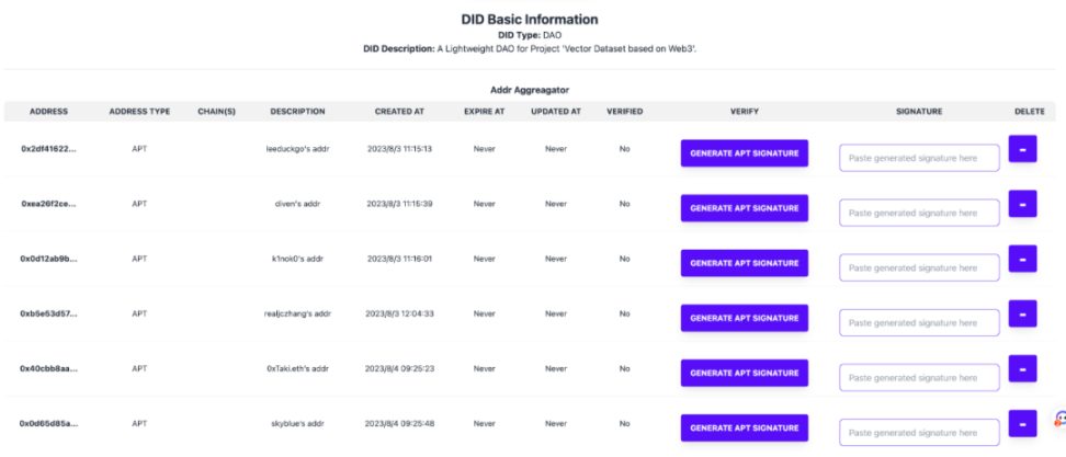 MoveDID 是一种扩展性协议,因此,MoveDID 支持多种地址格式,包括 Aptos 和 Ethereum 等多种类型的地址,但目前在Manager端仅开放了 Aptos 格式的地址。