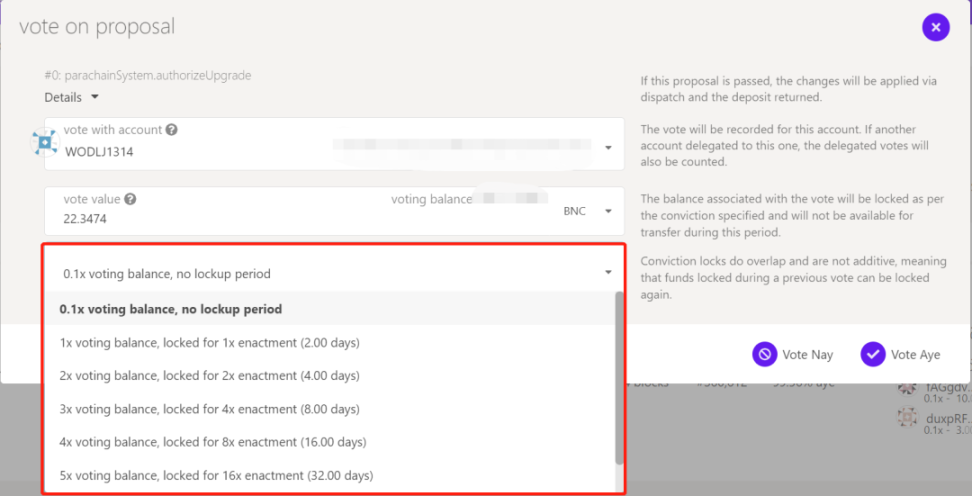 OpenGov 继承了 Gov 1.0 的信念投票机制。在该机制下投票效用不止与投票的治理通证数量有关,还与治理通证的质押时长有关。质押时长越长,代表“信念”越强,能获得的投票效用加成会越高。