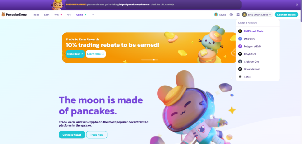PancakeSwap 现已在七个区块链网络上可用:币安智能链、以太坊、polygon、zksync、Arbitrum、Linea、Aptos