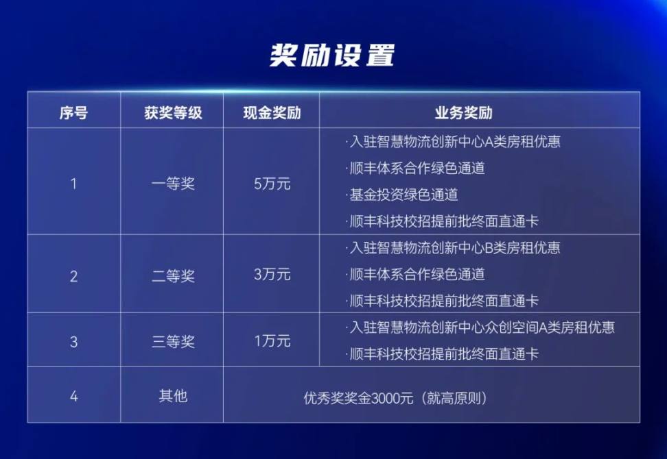 同时,获奖项目不仅在业务上获得了与顺丰产业合作对接的机会;在投融资方面,第一届应用组一等奖项目 - 慧仓科技、第二届参赛项目“终端配送产业升级智能物流小车”获得浙大科技园·顺丰智慧物流创新中心孵化器自有基金战略投资,第二届应用组三等奖项目“衔尾蛇包装碳中和”获得顺丰创新中心战略投资。