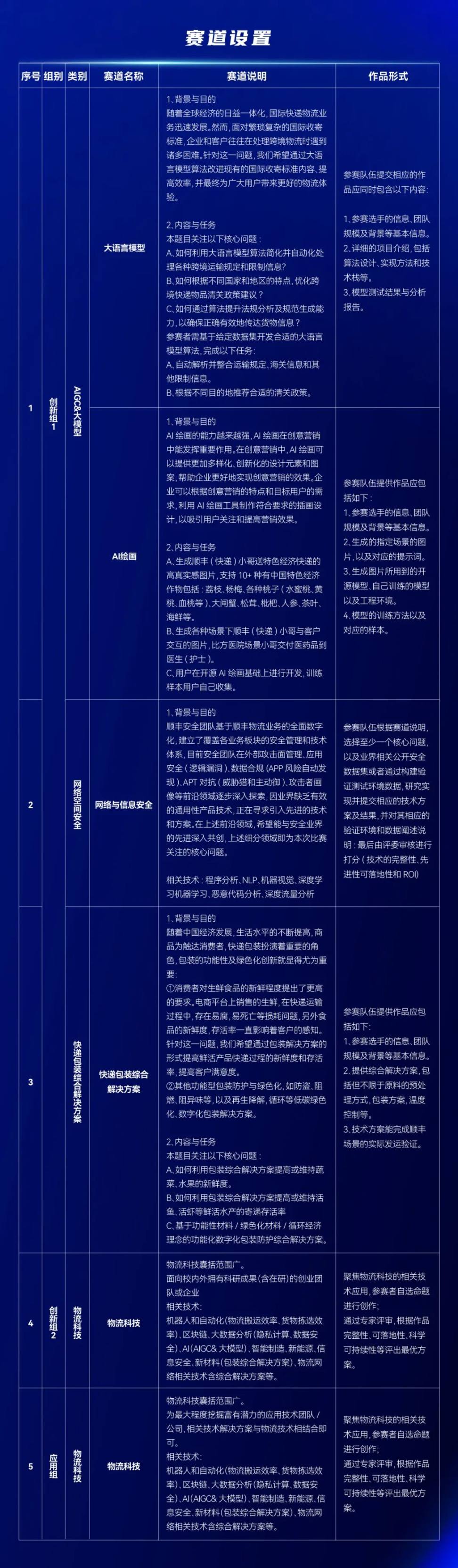2.关于参赛范围。主要聚焦于智慧物流产业;包括但不仅限于人工智能、大数据、智能制造、新能源、信息安全、新材料、5G 等领域;其中特别关注(AIGC&大模型)、大数据、区块链、运筹、机器人和自动化等技术方向。