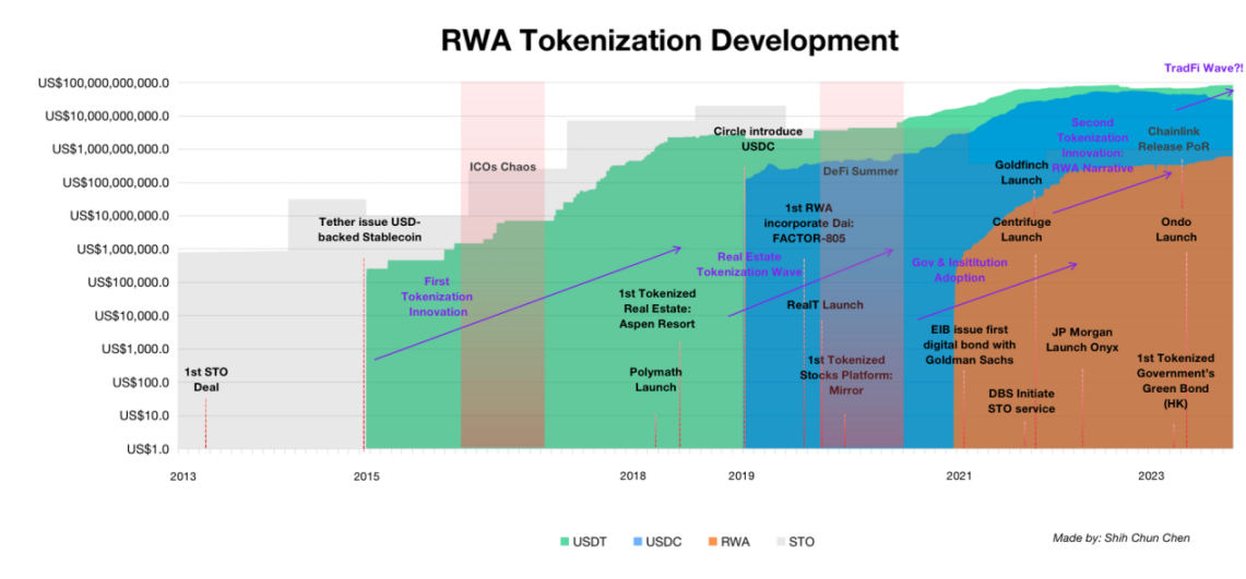 通过回顾 RWA 代币化的历史,我们可以发现,当 ICO 变得混乱时,就是安全代币发行(STO)入场的时刻;而当 DeFi 和 Layer1 变得更容易被大众使用时,代币即媒介(token-as-medium)可以向更多的投资者提供部分所有权和收益。此外,当 DeFi 由于弱可扩展性和高昂的入局成本而陷入小众市场时,我们可以从代币化的短期国库券或 RWA 抵押贷款中获得传统金融收益。因此,RWA 还处于早期发展阶段,但对加密货币的价值早已显现。