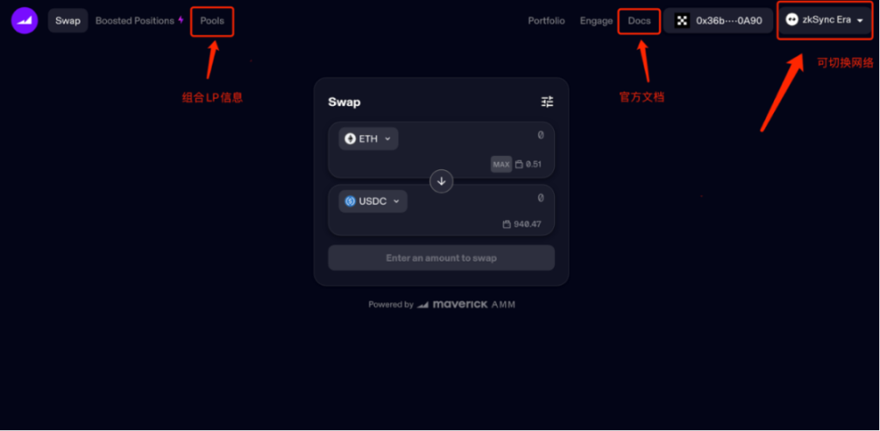选择交互链,Maverick 目前支持以太坊、zkSync Era 和 BNB 链