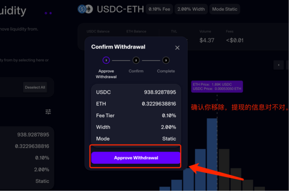 一定在向池子加入流动性时用鼠标滑过查池子页面流动性柱子(bar) 以查看每个流动性柱子内交易对的价格,确保自己的流动性添加在自己想要添加的价格,而不是非常规价格、导致资金被套走。