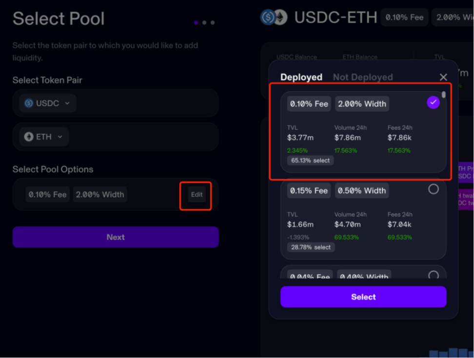 选择适合自己的流动性池组合 LP 头寸,或者自己开池子