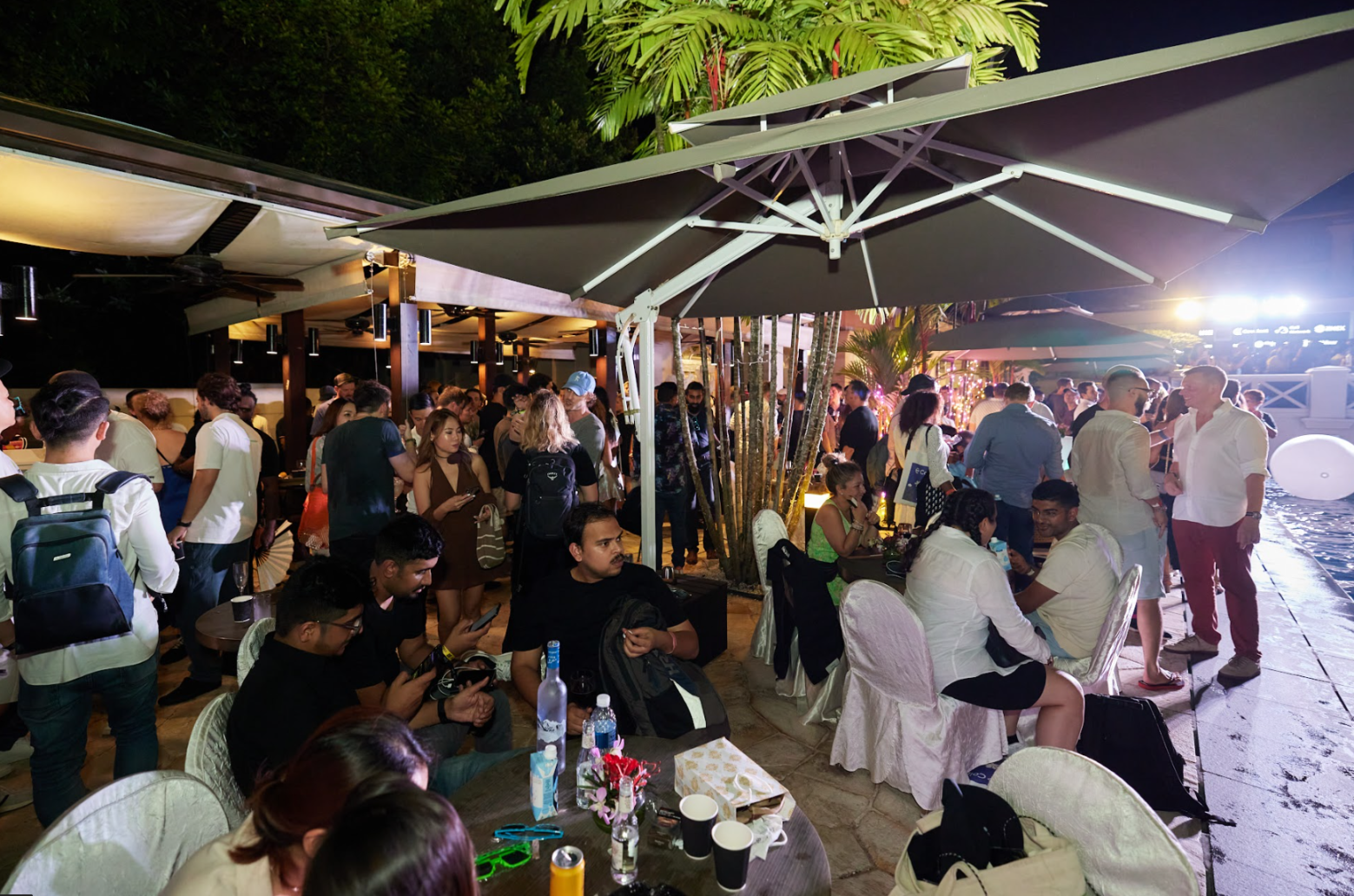 VIP Party 的主题是“投资人遇见创始人”,本就集结了来自于东方西方包括加密货币、Web3、华尔街投资机构等诸多领域的顶级资源,活动的宗旨在于进一步链接东方西方市场。所以第二个环节狂欢泳池派对活动阶段,延续了 VIP 环节的精髓,为与会者营造了一个相互沟通、高效对接资源的环境,比如不同行业角色的合作寻求、初创团队寻找投资人、投资者寻找投资项目等。