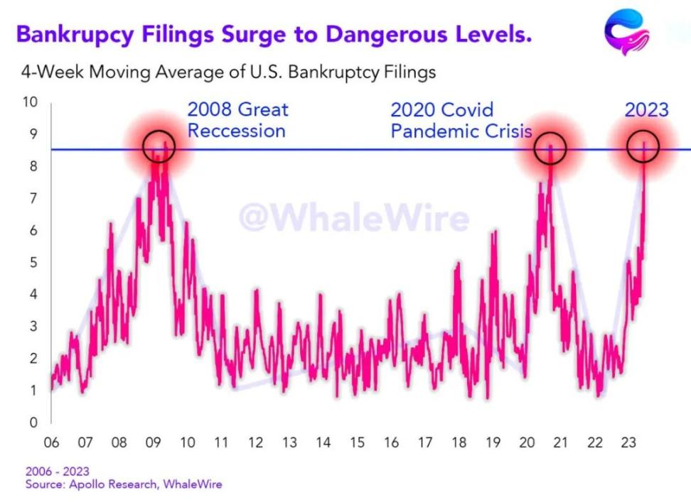 在高息的压力之下,美国大量中小企业纷纷破产。