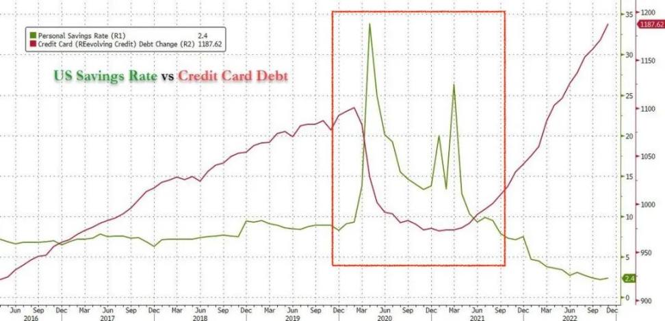 疫情期间直升机撒钱所造就的超额储蓄,已经近乎消耗殆尽。