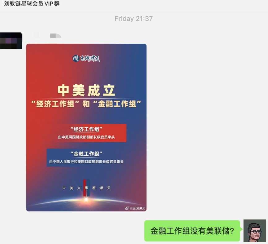 上周五突然传出重磅消息,中美双方商定,在经济领域成立两个工作组,一个是“经济工作组”,另一个是“金融工作组”。其中,“经济工作组”「由中美两国财政部副部长级官员牵头」,这个设定很正常,双方财政部是负责经济工作的对口工作部门;而“金融工作组”则是「由中国人民银行和美国财政部副部长级官员牵头」,这就有些耐人寻味了。难道美联储作为美国央行,其保持工作独立性,已经独立到连这种对口工作都不参与了吗?