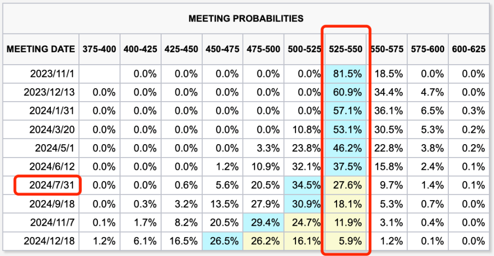 那么,换个视角,从市场的角度来看对于美联储加息的猜测: