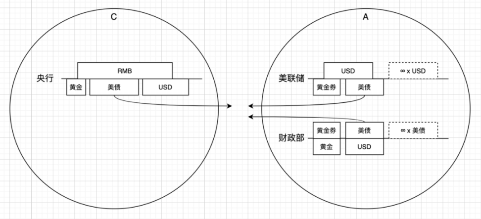 前文《华山论剑:最终的决战》铺开了 A、C 对决的对弈图。这图的起手,是双方都在疯狂抛售美债。C 抓住时间差,在 A 美联储缩表之前就高价抛售,储备美元子弹,同时,增持黄金。实际上,待到 A 美联储缩表的时候,美债已经跌到比美联储 QE 扩表时还要低的价格了。也就是说美联储其实是在亏钱卖资产。
