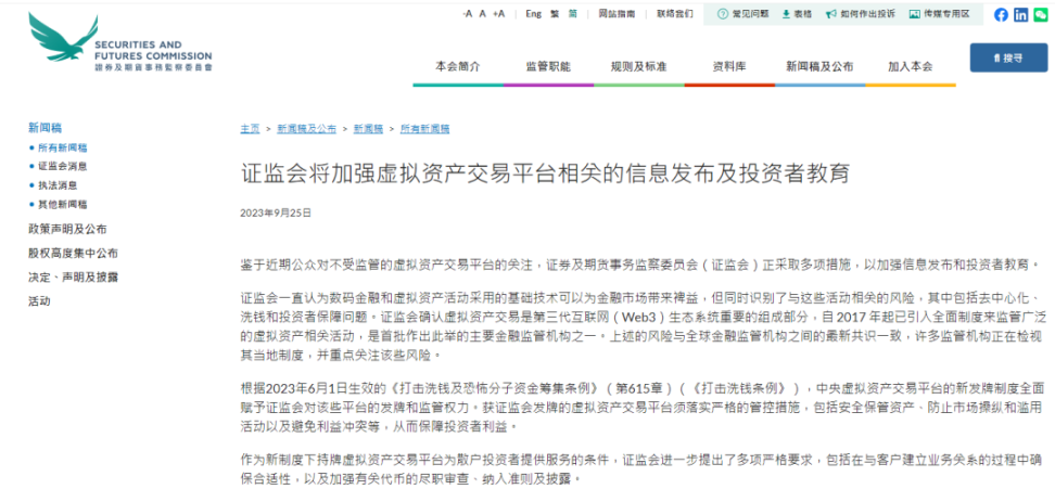 香港证监会重大宣布:允许持牌虚拟资产平台向散户提供服务