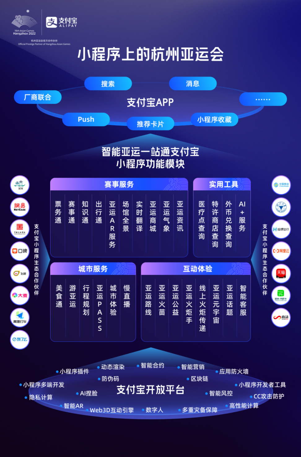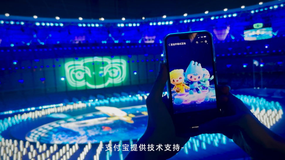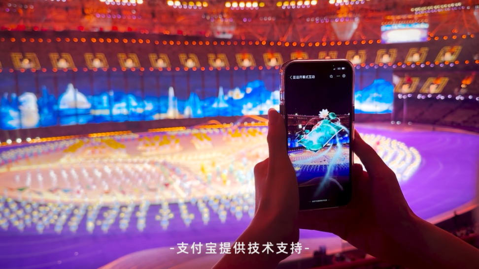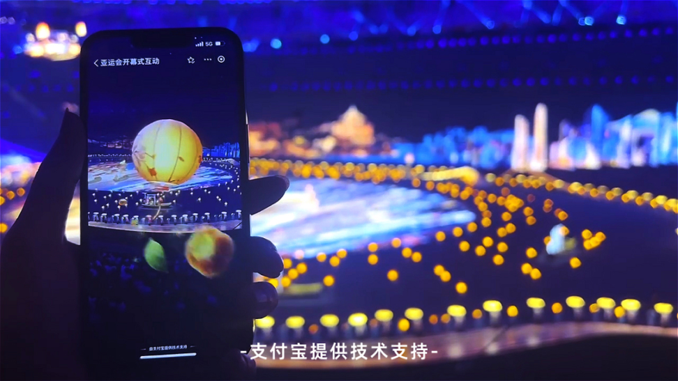 作为亚运官方合作伙伴、技术服务方的支付宝用技术助力开幕式首创了数实融合、人人可参与的两大经典时刻:超 1 亿数字火炬手跑出支付宝 App 汇聚大莲花点燃主火炬,实现全球首个数字点火仪式;万名观众在现场通过支付宝放飞许愿灯召唤吉祥物,实现全球首次大型演出 AR 互动创举。“我们决定首创一种万众参与、数实融合的数字点火仪式,让每个人都能在数字世界里参与亚运,弘扬奥林匹克精神”,开幕式总导演沙晓岚表示,“我们需要一个实实在在能够容纳上亿人同频共振的平台。亚组委向我们推荐了支付宝,感谢技术工程师们让设想变成了现实”。