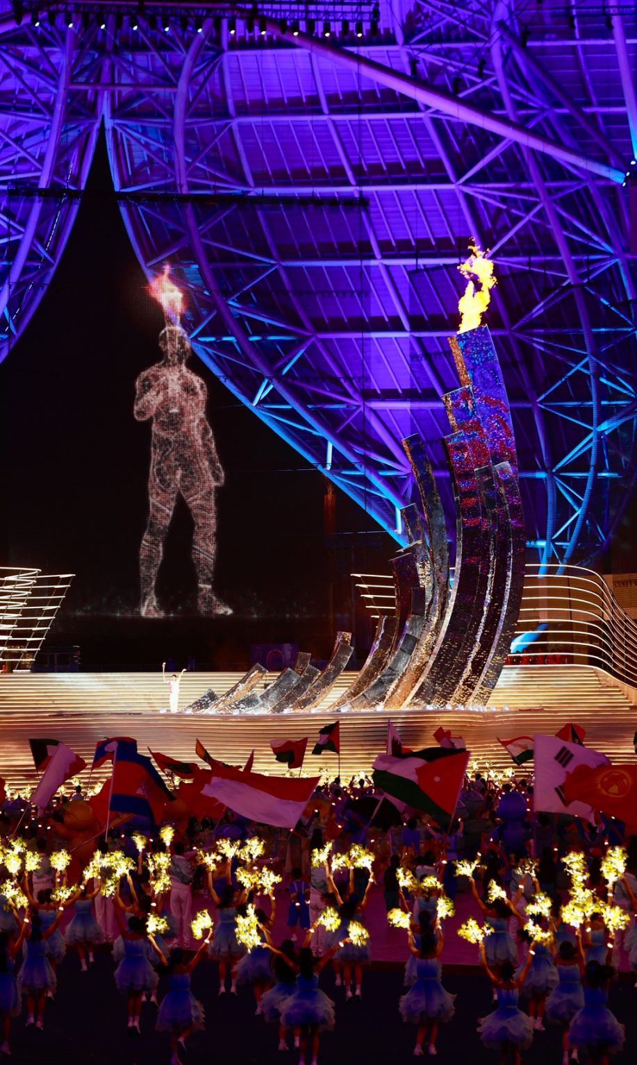 9 月 23 日晚 8 时,杭州第 19 届亚运会开幕式在杭州奥体中心体育场隆重举行。作为历届体育盛会最受关注的环节,本届开幕式在全球范围内首次实现“数实融合”的点火仪式。当晚,超过 1 亿的“数字火炬手”汇聚到钱塘江上,形成一个具象的数字火炬手,从钱塘江踏着浪花一步步来到“大莲花”上空,和第六棒火炬手共同点燃主火炬塔。
