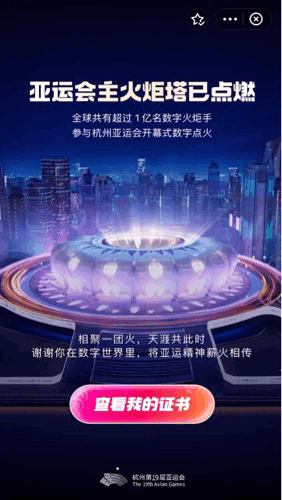 最元宇宙的全球首个运动会数字点火仪式!蚂蚁链为 1 亿数字火炬手发放点火证书