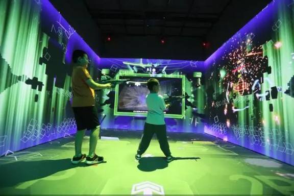“这是动捕技术,通过环绕顶部的 8 组专用摄像头,捕捉位于玩具枪上方 4 颗反光小球和人体脚部贴的反射点,再经过计算实现空间相对位置与交互识别,和靠穿戴模式的动捕技术不同。”吴易珉向媒体介绍,“这个场景是可以直接商业化复制的,已经有人来咨询了”。