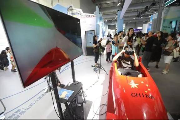 参观者更加熟悉的是元宇宙在文旅项目的落地。比如首钢园 2 号馆延庆展台前有一个红色雪车模型,参观者戴上 VR 眼镜就如同置身于虚拟的“雪游龙”赛道,用这种方式体验冰雪文化更直观,对于小朋友而言,只滑一次显然意犹未尽。