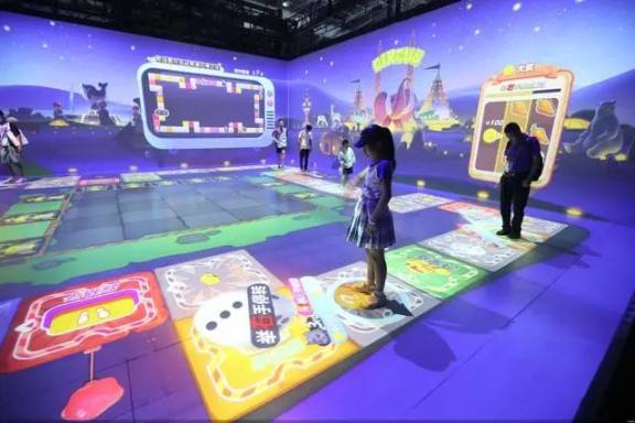 深灵其境元宇宙运动乐园旁边的淳中科技展区,参观者进入后也不会很快出来。淳中科技市场主管吴易珉印象最深刻的是,三个孩子在展区玩了三个小时的元宇宙射击游戏“像素特工队”。玩家持玩具枪在被投影的墙壁上射击,墙面会实时显示射击痕迹。