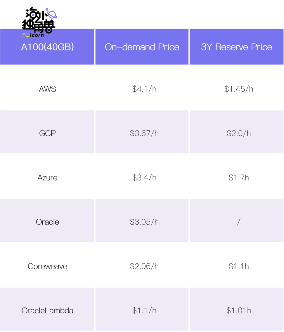此外, Lambda Labs 也利用较高的 On-demand 利用率来实现长短期价格的套利:因为 Lambda Labs 的 A100 供不应求,于是便和 Oracle 以较低价格签订了一些长期 Reverse 的 A100 Instance,再以 On-demand 价格卖给新客户。不过如果未来 LLM 的需求集中到头部大模型公司的话, Lambda 这样的套利将面临亏损的风险。这属于在竞争激烈的行业里用创新的定价策略找到了不错的市场地位。