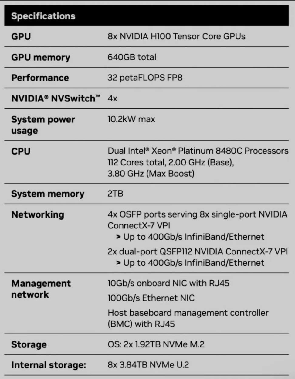 NV ConnectX-7(400Gbps): Azure、Coreweave、Oracle、Lambda