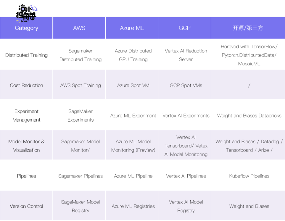 • Azure 目前在 Training 环节优势明显,因为和 OpenAI 的强势绑定,Azure 最先享受到了 LLM 红利,但因为计算资源和服务精力都集中在 OpenAI 上,因而客户多元化受到挑战,也无法在 Serving 环节进行充分布局;