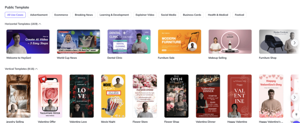 站在 C 端用户视角,Heygen 在产品模板和易用性的优势更加明显,除了 Templete、Avatar 的选择更加丰富、多元外,我们也注意到 Heygen 也提供了竖屏模版,更适配短视频时代的需求。