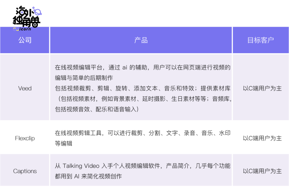 此外,Gen-AI 热潮中也带动了不少和 AI 能力结合的新一批的视频剪辑产品的出现,这些新产品相当积极地将 AI 功能糅合进自己的产品设计中。