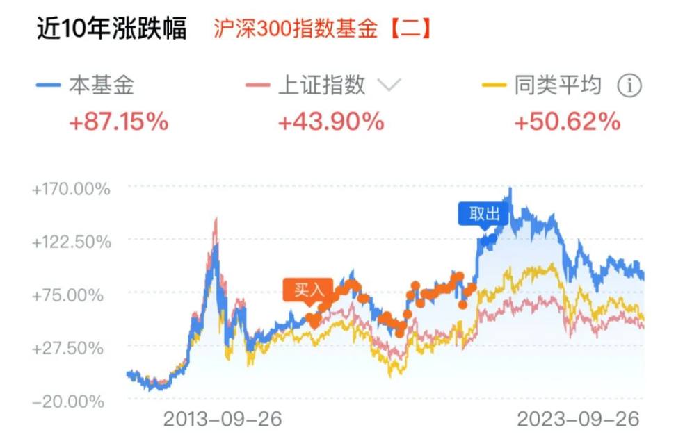 到了 2017 年,我换仓到另外一个沪深 300 基金。已经记不得当时为啥要换同型号的车了,可能是手续费优惠之类的?