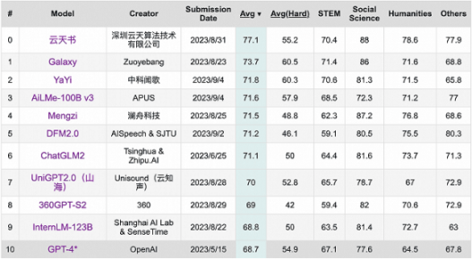 9 月,学术界当红开源评测榜单 C-Eval 最新一期排行榜中,云天励飞的大模型「云天书」排在第一,而 GPT-4 仅名列第十。