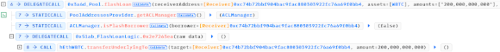 循环 58 次后,攻击者取出了所有前期投入的 wBTC ,并顺利归还 Aave 的闪电贷。