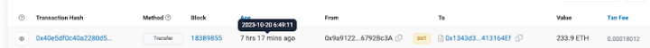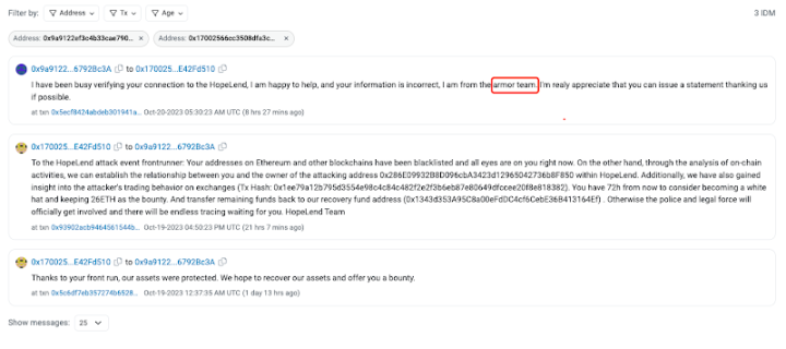 在 10 月 20 日 13:30:23,疑似官方团队联系了该地址,允许抢跑者留下 26ETH(10% 的获利)作为奖励,并得到抢跑者的答复。