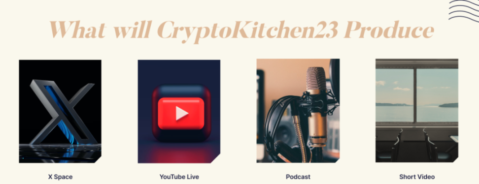 X Space:为让广大受众了解活动目标、内容和意义,将在 CryptoKitchen23 之前、期间和之后举办多场 X Space。