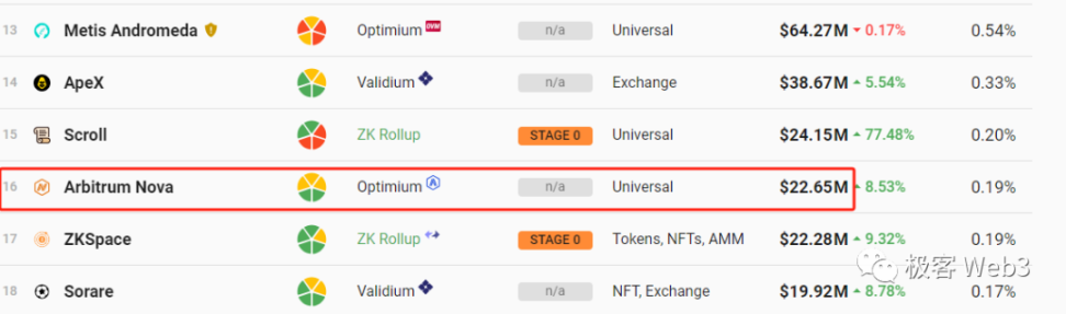 如今绝大多数以太坊 Layer2 的流动性集中在 Arbitrum、Optimism 等正统的 Rollup 项目上,这些项目的主要版本必然不会和 Celestia 集成。而Arbitrum Orbit 只是一个类似于 Arbitrum Nova 的次要版本,大概率无法与几大「正统 Layer2」比肩。Celestia 即便能够引流此类「次级 Layer2」,似乎也带不来多高的价值捕获。(Arbitrum Nova 目前只有约 2200 万美元的 TVL)