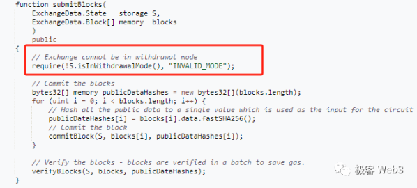 要注意的是,强制提款不会被立刻处理,而是置入 pendingForcedWithdrawals 队列,处于待处理状态。Sequencer 注意到有人在 Layer1 发起强制提款后,一般会在 15 天内触发 ExchangeV3 合约中的 Process 函数,在以太坊链上把 Token 转给提款发起者(从 L2 项目方在以太坊链上的存款地址,给提款者转钱)。
