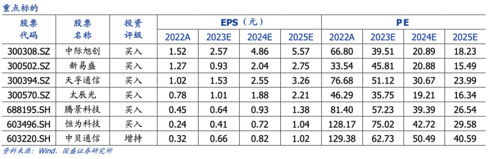 光通信:中际旭创、新易盛、天孚通信、太辰光、腾景科技、德科立、联特科技、华工科技、源杰科技、剑桥科技、铭普光磁。