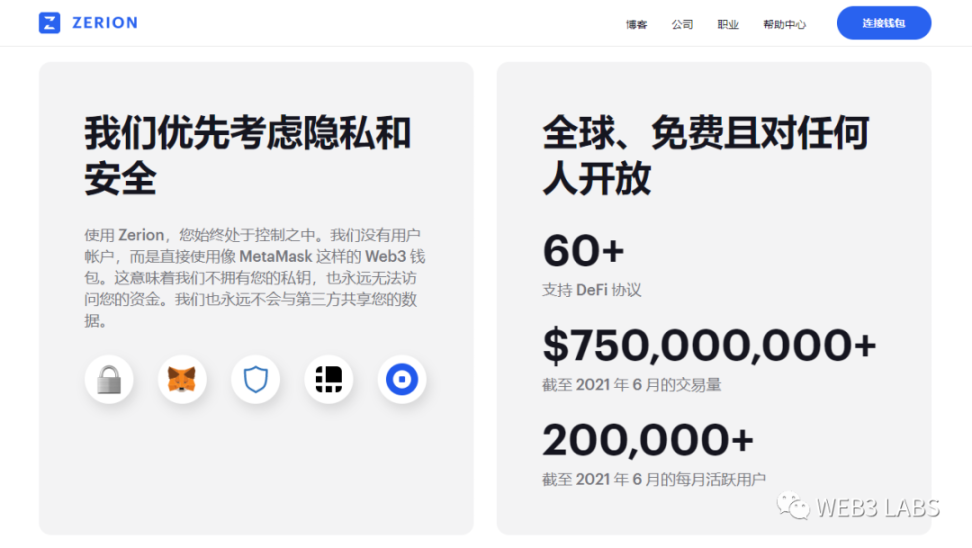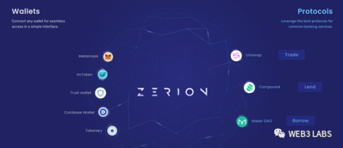 Zerion 是一个通用界面,允许用户交易、投资、借贷、兑换和进行与 DeFi 相关的所有工作,同时保留其资金的全部托管权。Zerion 是 DeFi 协议的一种媒介,用户可以使用自己喜欢的钱包来连接到 Zerion 并实时管理资产。