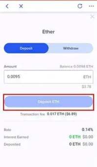 4. 输入您要存入的金额,查看 gas 费,然后点击“Deposit”。确认交易。