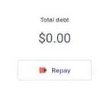3. 您可以随时退还贷款。只需点击借款页面,找到“Total debt”,然后点击“Repay”。