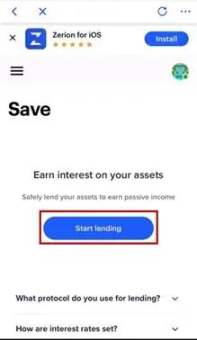 3. 输入“Save”,然后点击“Start lending”。选择您要存入的资产。