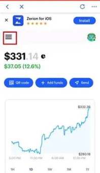 2. 进入 Zerion 后,您将看到钱包的余额。点击左上角的图标,查看您的钱包地址和所有可能的功能。