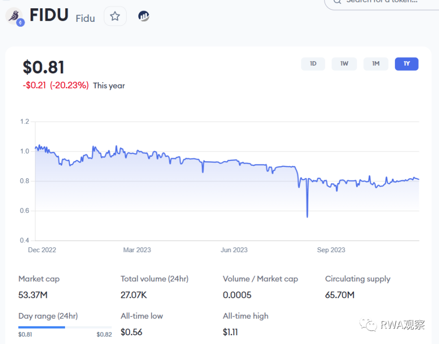 有意思的是,其实投资者不去 Goldfinch 投资,直接在交易所也可以买到 Fidu,而且价格还便宜。