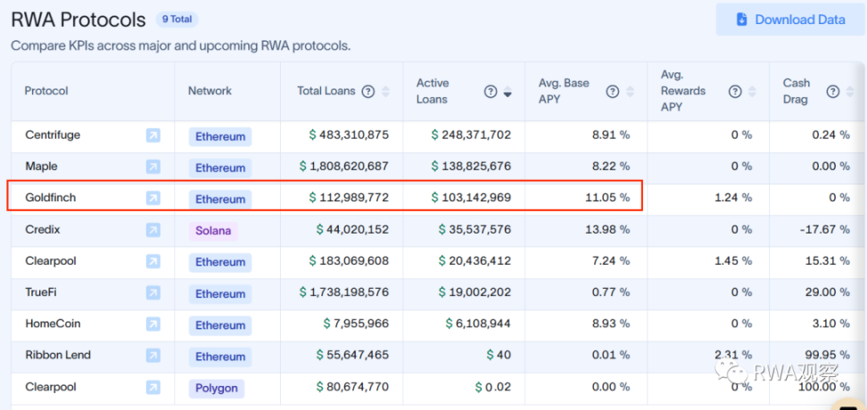 从资产规模上看,今天重点介绍的 Goldfinch 要排名第三。