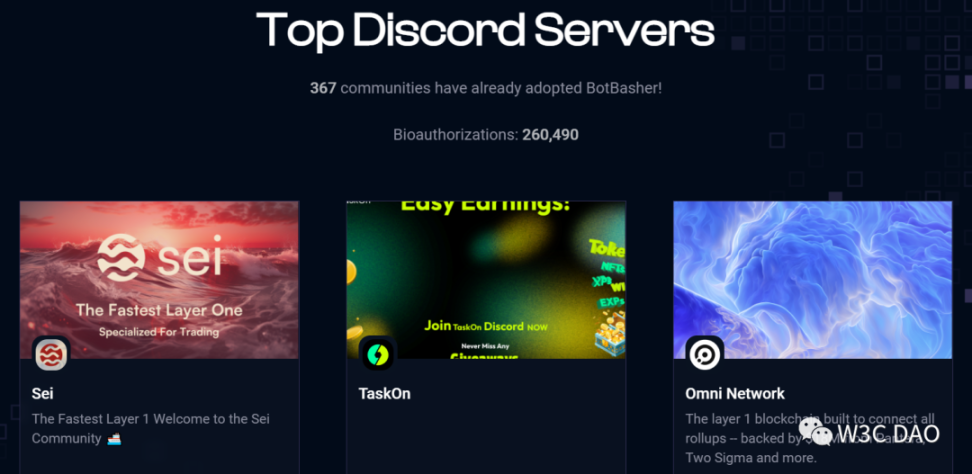 目前 367 个 社区已经采用 BotBasher,生物授权次数高达 260,490。包括知名项目和交易所如:SEI,Omni Network,Mantle Network,BitMart Fan Community。