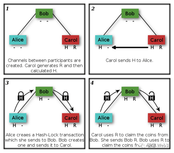 这就是哈希锁定,它巧妙地利用了哈希锁和时间锁,迫使资金的接收方必须在 deadline 之前确定收款,并且产生源链上的收款证明,而打款方凭借这个收款证明,一定可以获取接收人在目标链上的等价资产,否则双方的资金都将原路返还。