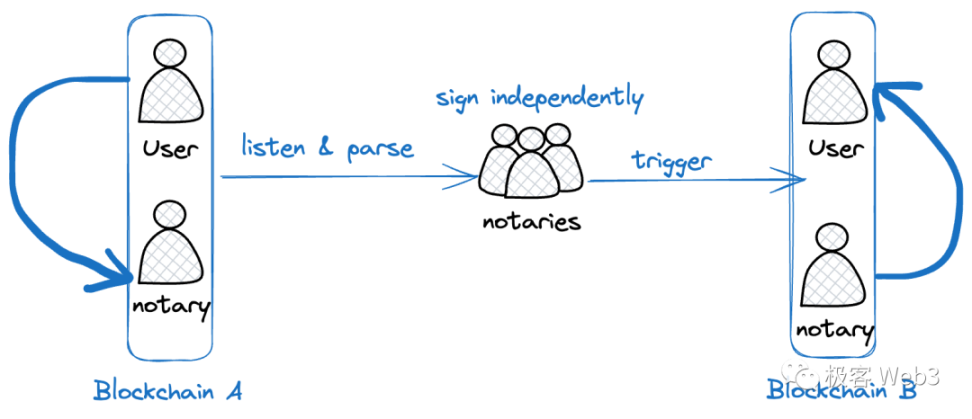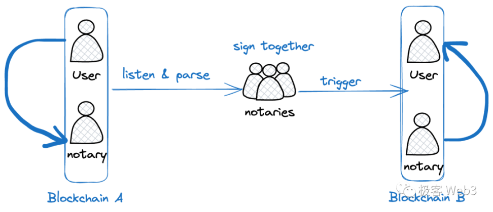 这种方案比较靠谱了,弱化了中心化风险,安全性更高一些。比如一共有 20 个信誉良好的公证人,他们同时动歪心思的概率还是很低的。(这里不包括 Multichain 那种 20 个节点实际上是一个人管理的情况,或是像 Axie 跨链桥那样被黑客盗取了 2/3 公证人的签名密钥。)