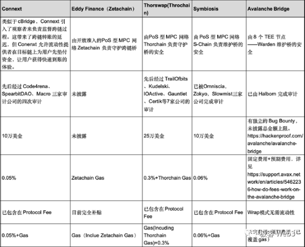 我们先从安全、费用、连接范围三个比较清晰的角度来概览一下一些项目的特性。