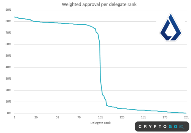 这个理论也可以通过一张关于每个受托人层级获得票数的图表 见上图 来证明。可以发现,主动受托人和被动受托人之间的边界极其清晰。