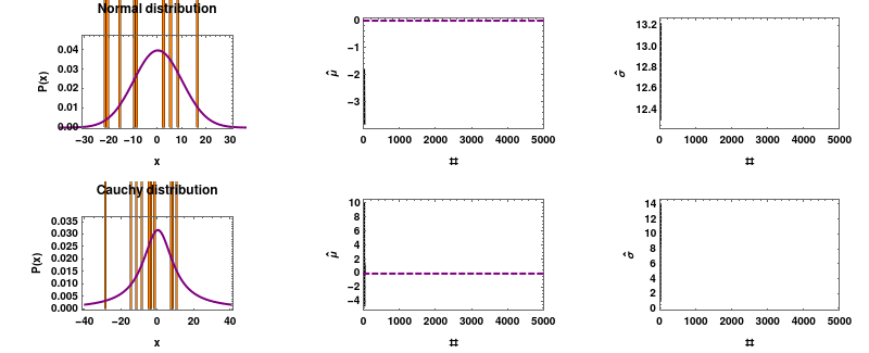 柯西分布不遵循大数定律,它拥有自己的意愿。你可以参考这个链接:https://en.wikipedia.org/wiki/Cauchy_distribution#/media/File:Mean_estimator_consistency.gif,了解柯西分布的特性。